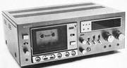 This beautifully styled machine incorporates a glass covered door over the cassette compartment which allowed easy loading and was very clearly precision made. The usual phono and DIN sockets are complemented by a large remote control socket at the rear, whilst mono microphone jacks and a stereo headphone jack are on the front panel.
