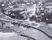 - Luftaufnahme zur AROMAX-Zeit etwa 1951/52. Links der Kopfbau mit den hohen Fenstern, hinter denen die Nährmittelspeicher zu ahnen sind. Parallel zur Straße das ebenfalls 1948/49 von AROMAX gebaute Hauptgebäude. Rechter Abschluß durch das ehemalige Silo von Petersen & Johannsen. Links vom Kopfbau: an der Straße das Haus von Therese Jens, hinten die von AROMAX gebaute Kantine